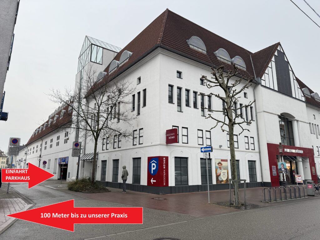 Für Ihren Besuch stehen Ihnen zwei Stunden kostenfreie Parkmöglichkeiten im Parkhaus des Modepark Röther, direkt neben unserer Praxis, zur Verfügung. Alternativ finden Sie weitere kostenpflichtige Parkplätze unmittelbar vor unserem Praxisgebäude entlang der Straße.